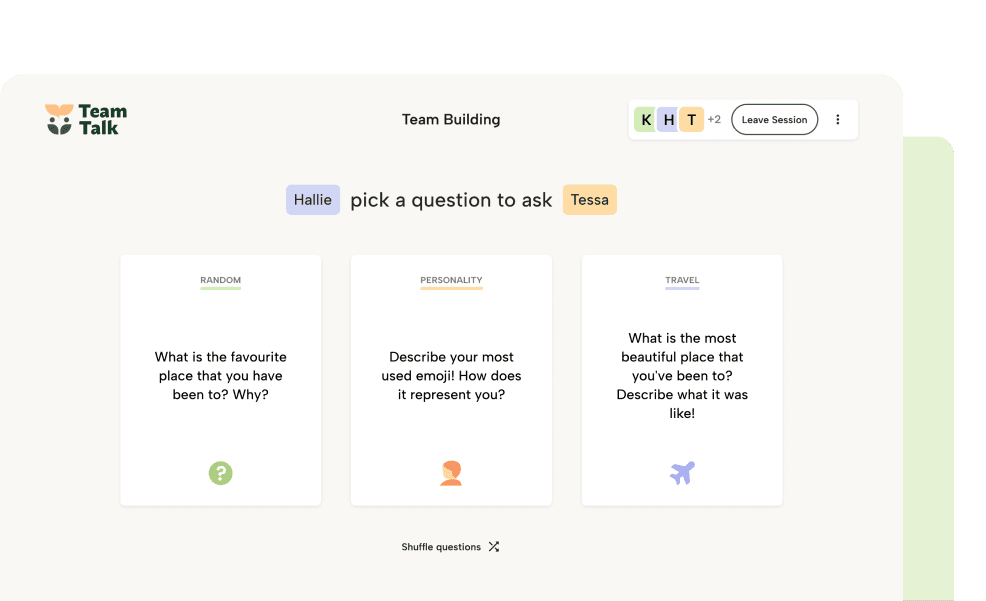 TeamTalk is a conversation activity designed to help teammates